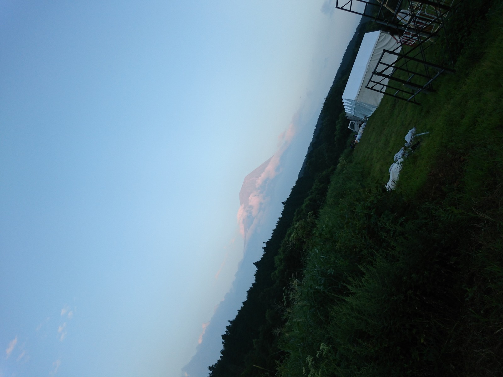 雲で覆われて、てっぺんは見えません。